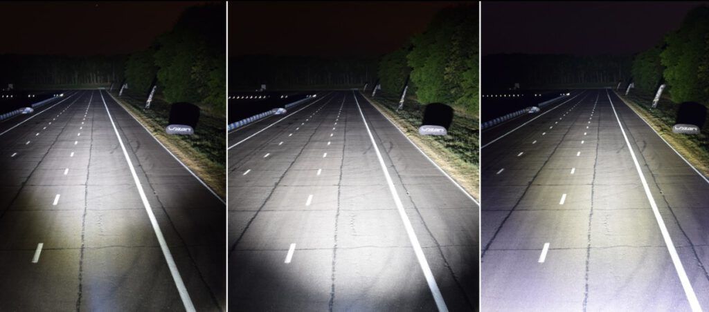 – Tầm chiếu xa: Đây là điểm mạnh nhất của Bi Laser so với Bi LED. Bi Laser có thể chiếu xa gấp đôi Bi LED (ví dụ: 600m so với 300m), đặc biệt hữu ích khi di chuyển tốc độ cao.